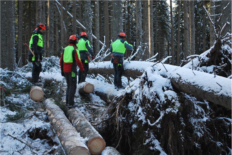 Nun organisieren die Agentur Landesdomäne und die Abteilung Forstwirtschaft für Waldbesitzer und Interessierte aus den vom Windwurf betroffenen Gemeinden Schulungstage zur Windwurfaufarbeitung. Dabei wird vermittelt, wie die Gefahrenquellen nach einem Windwurf erkannt und richtig bewertet werden. Zudem werden auf lokalen Windwurfflächen die Grundregeln für sicheres Arbeiten sowie geeignete Schnitttechniken erprobt.