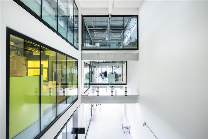 Im Untergeschoss sowie im Parterre des Laborgebäudes befinden sich Labors zur Mumienforschung und zu Erneuerbaren Energien von Eurac Research, zusätzlich sind auf dem Dach diverse Freiluftlabors eingerichtet. In den Stöcken zwei bis fünf forschen Unibz und Eurac in den Bereichen Automatisierung und Sensorik, daneben sind hier die Lebensmittellabors von unibz und dem Versuchszentrum Laimburg untergebracht. "Im Labor für Aromen und Metaboliten werden natürlich vorkommende Inhaltsstoffe in landwirtschaftlichen Produkten wie Äpfeln, Apfelsaft, Trauben, Wein, Käse oder Milch sowie in Pflanzenbestandteilen analysiert, um deren Qualität, Charakteristik und Reinheit zu prüfen. Das Labor ist mit modernsten Laborinstrumenten wie etwa Gaschromatographen und hochauflösenden Massenspektrometern ausgestattet", berichtete Angelo Zanella, stellvertretender Direktor des Versuchzentrums Laimburg.