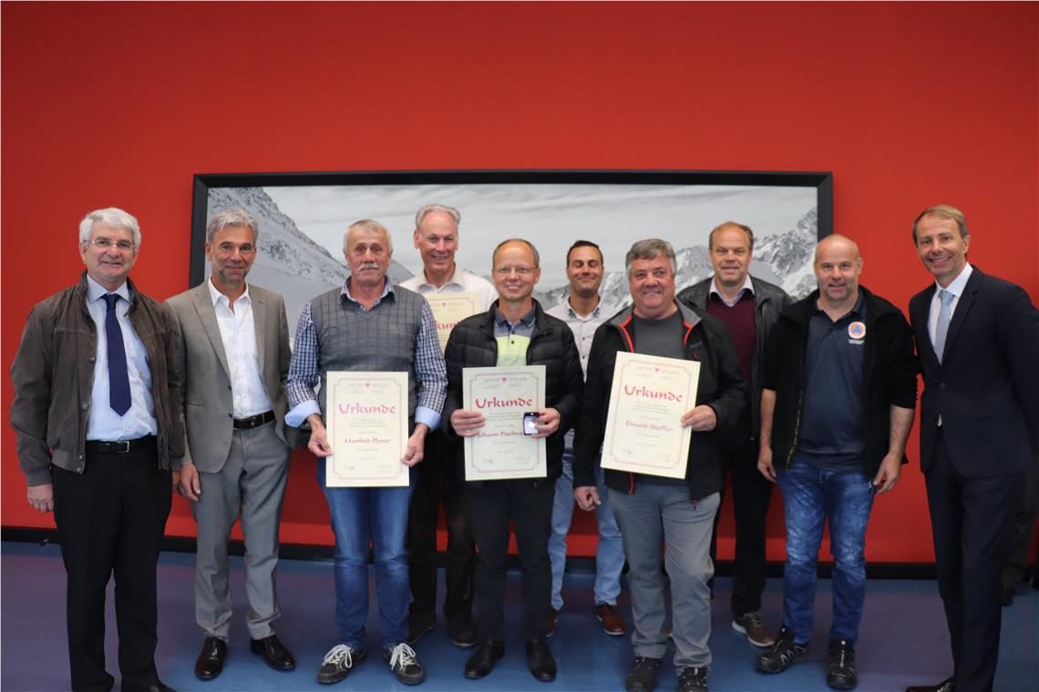 Bevölkerungsschutzlandesrat und Agenturdirektor haben zwölf pensionierten Arbeitern der Wildbachverbauung für ihren langjährigen Einsatz gedankt.