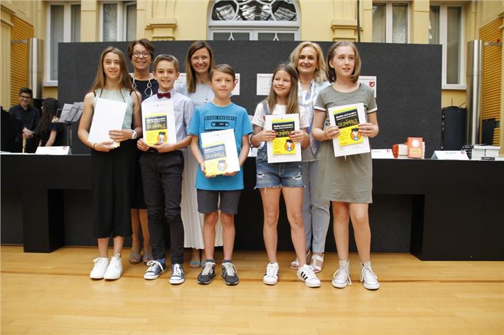 Ausgezeichnet wurden heute (6. Juni) im Beisein von Bildungslandesrat Philipp Achammer, Landesschuldirektorin Sigrun Falkensteiner, der Direktorin der Pädagogischen Abteilung, Gertrud Verdorfer, sowie zahlreicher Schulführungskräfte und Mathematiklehrpersonen die jeweils Besten aller Altersstufen: Dazu gehörten in diesem Jahr 83 Kinder und Jugendliche aus 53 Schulen, die mehr als 50 Punkte erzielt haben. Besonderen Beifall gab es für Tom Schluga aus der Mittelschule der Ursulinen in Bruneck, der die Höchstpunktezahl von 120 erreicht hat.