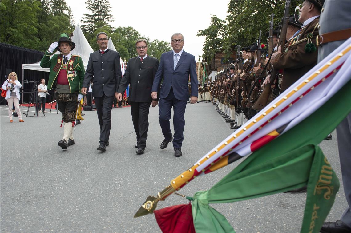 Der Tiroler LH Platter hat den EU-Kommissionspräsidenten Juncker für sein Wirken im Interesse des Landes Tirol geehrt. An der Feier in Going am Wilden Kaiser nahm auch Südtirols LH Kompatscher teil.