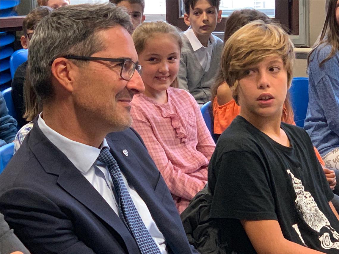 Mit Liedern begrüßten auch die Schülerinnen und Schülern der Grundschule "Dante Alighieri" die Euregio-Delegation. Direktorin Sabina Giunta sprach sich in ihrer Begrüßung für eine Stärkung der Klassen- und Schulpartnerschaften aus, was - so die drei Euregio-Landeshauptleute - ganz im Sinne des Euregio-Gedankens sei. "Mit unserer Vielfalt an Sprachen und Kulturen sind wir ein kleines Europa mitten in Europa", sagte Landeshauptmann Kompatscher. Daher sei das europäische Leitmotiv der Einheit und der Gemeinsamkeit in der Vielfalt für die Euregio von besonderer Bedeutung.