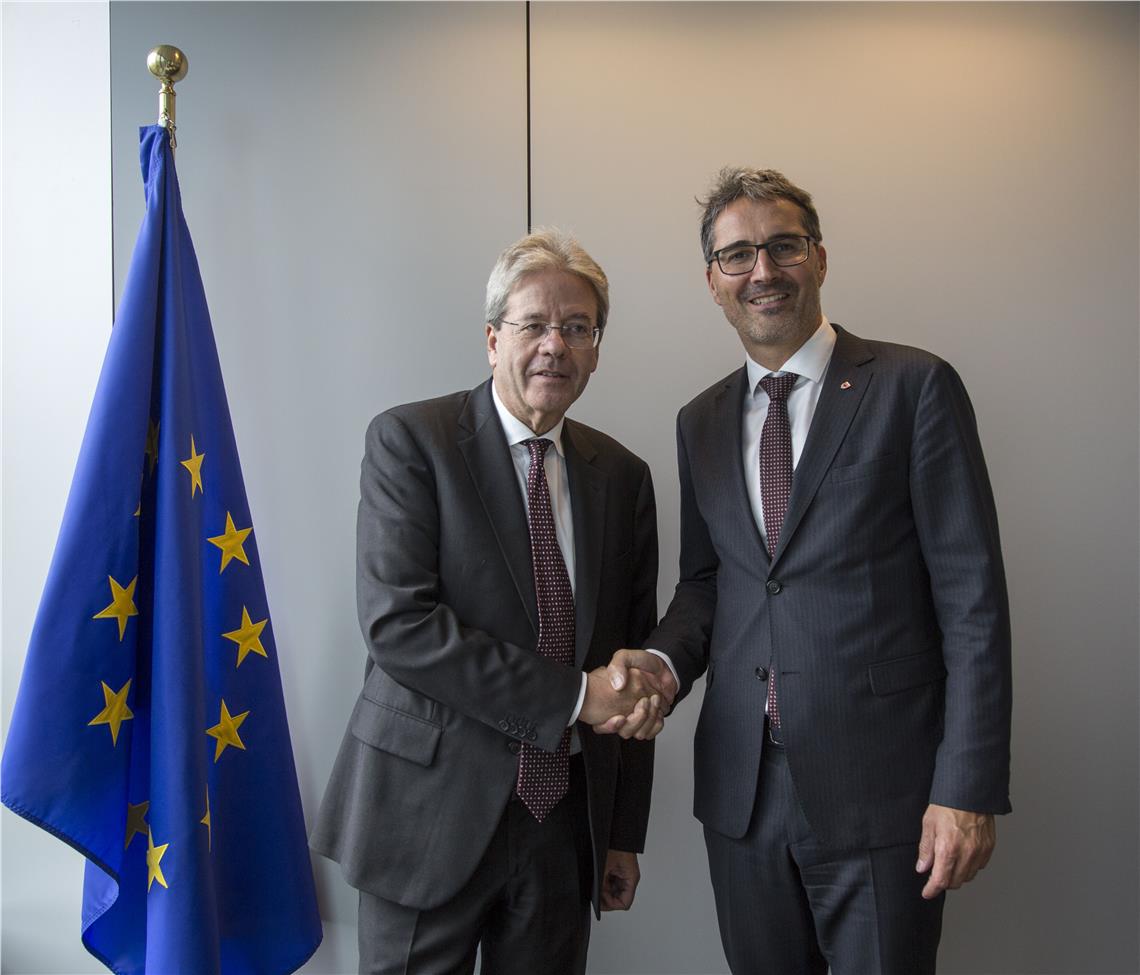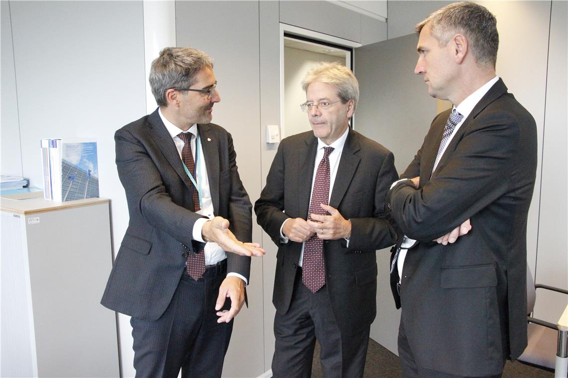 In einem kurzen, herzlichen Gespräch tauschten sich Landeshauptmann Kompatscher und der Südtiroler EU-Parlamentarier Herbert Dorfmann mit dem künftigen Wirtschaftskommissar Gentiloni über die europäische, italienische und Südtiroler Wirtschaftslage aus. Gentiloni versicherte, stets ein offenes Ohr für die Südtiroler Anliegen zu haben.