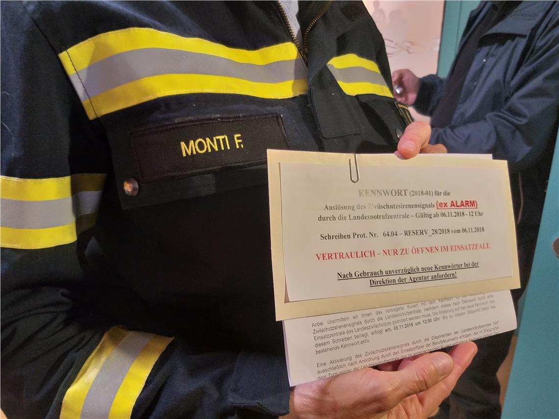 In der Zentrale der Berufsfeuerwehr geht ein Anruf ein: Diese Anfrage zur Auslösung eines Zivilschutzalarms können nur berechtigte Amtspersonen vornehmen: der Landeshauptmann, der Bevölkerungsschutzlandesrat, der Direktor der Agentur für Bevölkerungsschutz, alle Bürgermeister und die Vorsitzenden der Bezirksleitstellen.