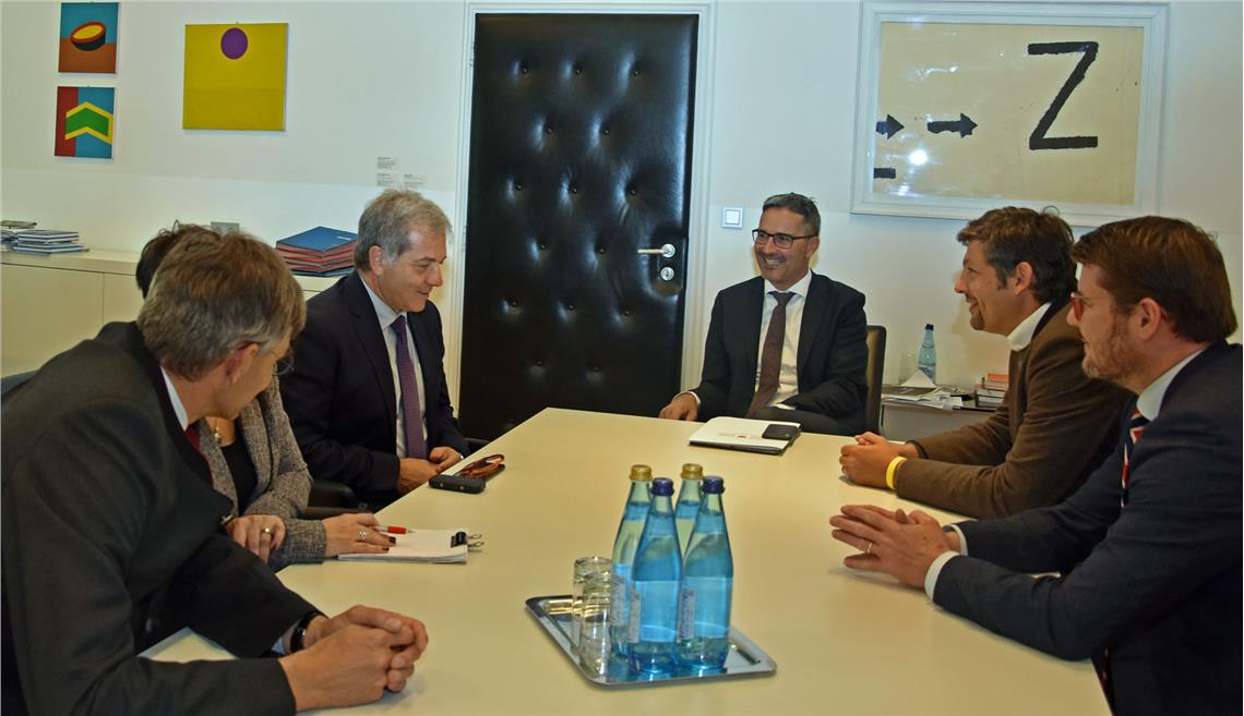 Der neue italienische Vorstand der Brennerbasistunnelgesellschaft BBT SE, Cardola, und sein österreichischer Kollege Gradnitzer waren auf Antrittsbesuch bei LH Kompatscher und LR Alfreider in Bozen.