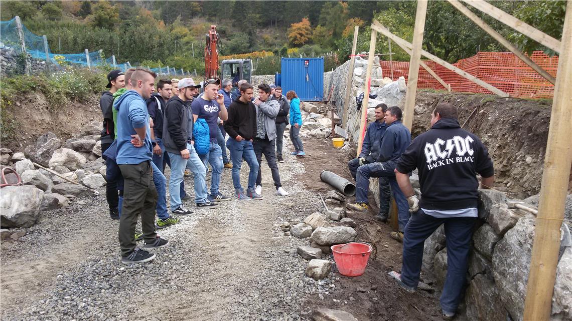 In Antholz besuchten zwei Klassen des Brunecker Oberschulzentrums "Cantore" mit Lehrer Claudio Rossi die Baustelle am Rieper Bach.