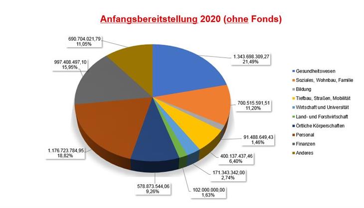 Der Haushalt 2020 umfasst demnach Einnahmen und Ausgaben von insgesamt 6,25 Milliarden Euro. Das sind deutlich mehr als die 5,9 Milliarden Euro des Vorjahrs. Im Vergleich zu dem am 15. Oktober von der Landesregierung behandelten Entwurf ist der Gesamtbetrag der verfügbaren Mittel um 40 Millionen Euro angewachsen.