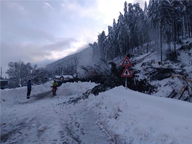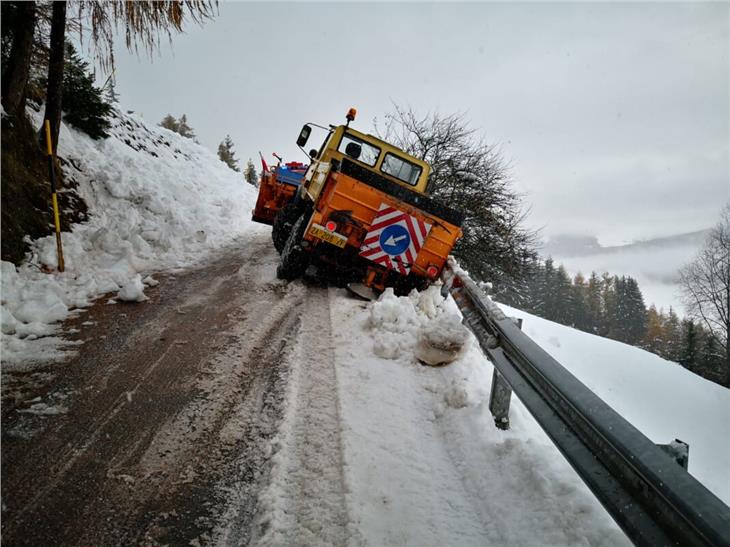 Die Arbeiter des Straßendienstes arbeiten intensiv, um die Straßen ehestmöglich wieder zu öffnen. Weiterhin geschlossen bleibt die Straße ins Gadertal.