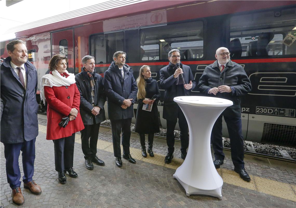 Mit dem neuen Direkt-Railjet, der ab Sonntag, 15. Dezember 2019, die Südtiroler Landeshauptstadt mit Wien verbinden wird, setzen das Land Südtirol und die Österreichischen Bundesbahnen ÖBB einen weiteren Meilenstein im Fernverkehr via Bahn über den Brenner. Die neue Zugverbindung wurde heute (12. Dezember) von Landeshauptmann Arno Kompatscher, Mobilitätslandesrat Daniel Alfreider und vom ÖBB-Vorstandsvorsitzenden Andreas Matthä bei einer Feierstunde am Bahnhof Bozen vorgestellt.