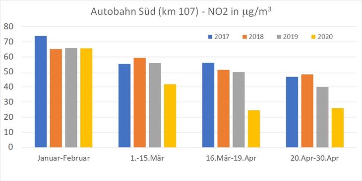 Von Mitte März bis Mitte April NO2-Werte halbiert