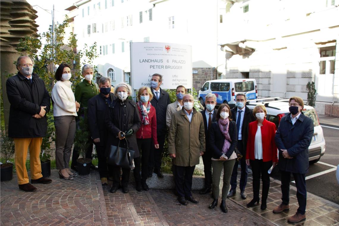 Das Landhaus 6 trägt nun offiziell den Namen "Landhaus 6 – Peter Brugger“, ein Zeichen der Anerkennung für dessen politischen Einsatz insbesonders für die Südtiroler Land- und Forstwirtschaft.