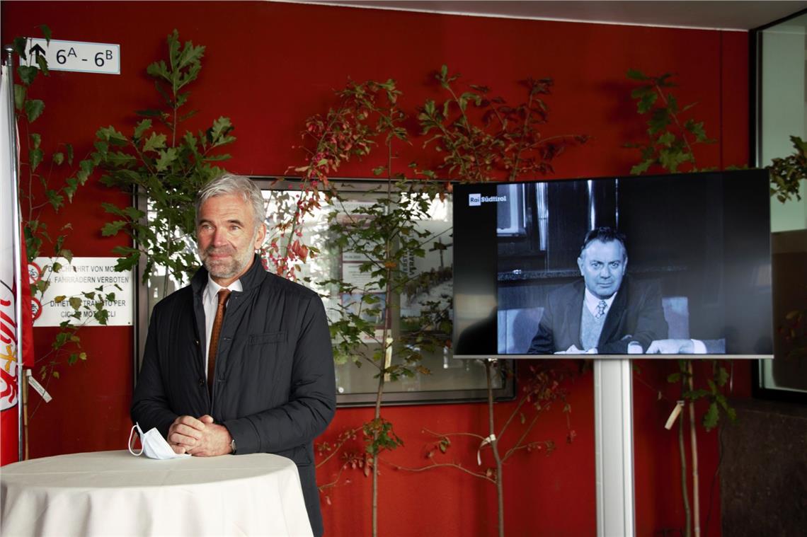 Der Landesrat für Land- und Forstwirtschaft, Arnold Schuler, hat sein Ziel erreicht: Das Landhaus 6 ist nach dem Südtiroler Politiker und ehemaligen Senator der Südtiroler Volkspartei (SVP) Peter Brugger benannt. Die Enthüllung des Namensschildes fand heute (9. Okober) im Rahmen einer coronabedingt schlichten Feier mit Segnung statt. An dieser nahmen neben der Familie Brugger auch Landeshauptmann Arno Kompatscher, die ehemalige Landesrätin und Historikerin Martha Stocker, sowie der Bozner Bürgermeister Renzo Caramaschi und Vizebürgermeister Luis Walcher teil.