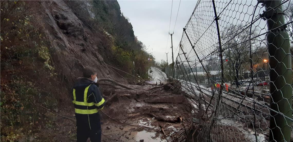 In der Trientstraße in Bozen hat eine Vermurung die Bahngeleise erreicht. Der Bergrettungsdienst Südtirol hat mit einer Drohne einen Lokalaugenschein durchgeführt und damit die Geologen des Landesamtes für Geologie und Baustoffprüfung und der Gemeinde Bozen unterstützt.