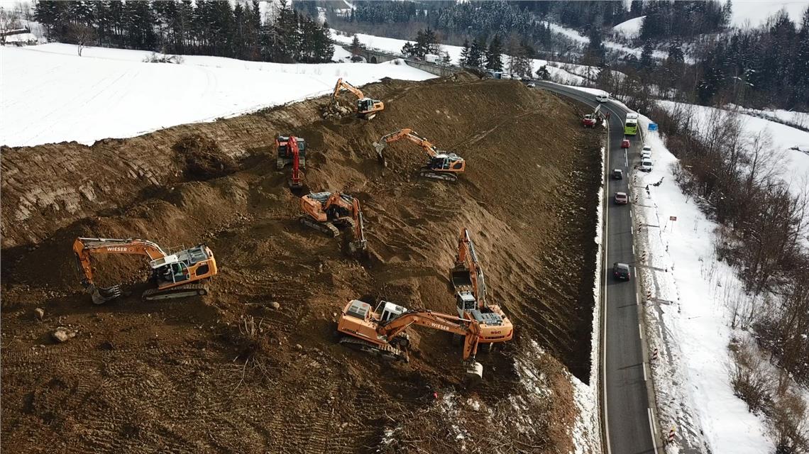 An zwei weiteren Stellen hat die Firma Geobau die Straße mit Pfahlböcken gesichert. Für diese beiden Sanierungsarbeiten wurden rund 500.000 Euro investiert.