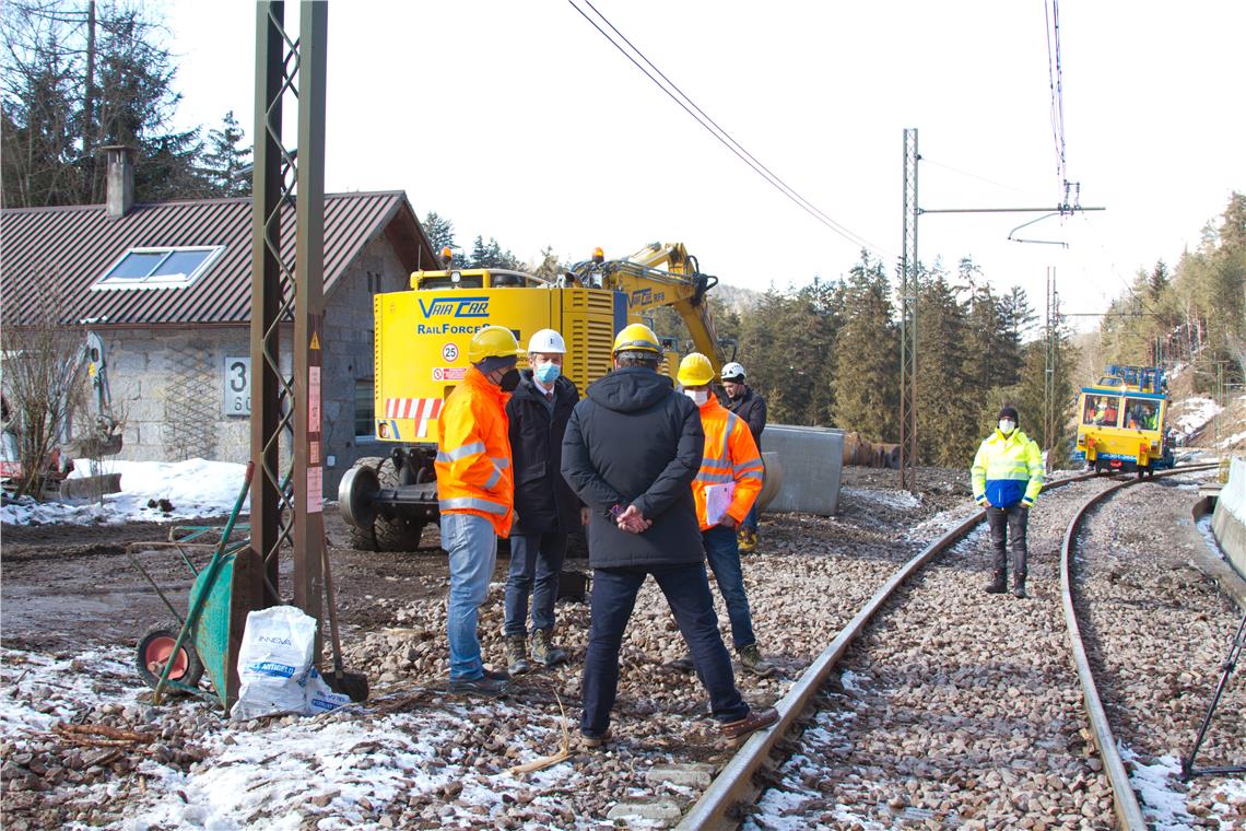 Von den Sicherungsarbeiten bei der Pustertal Bahn in Percha hat sich LR Alfreider am 11. Februar ein Bild gemacht. Die Arbeiten stehen vor dem Abschluss. Am 15. Februar soll die Bahn wieder fahren.