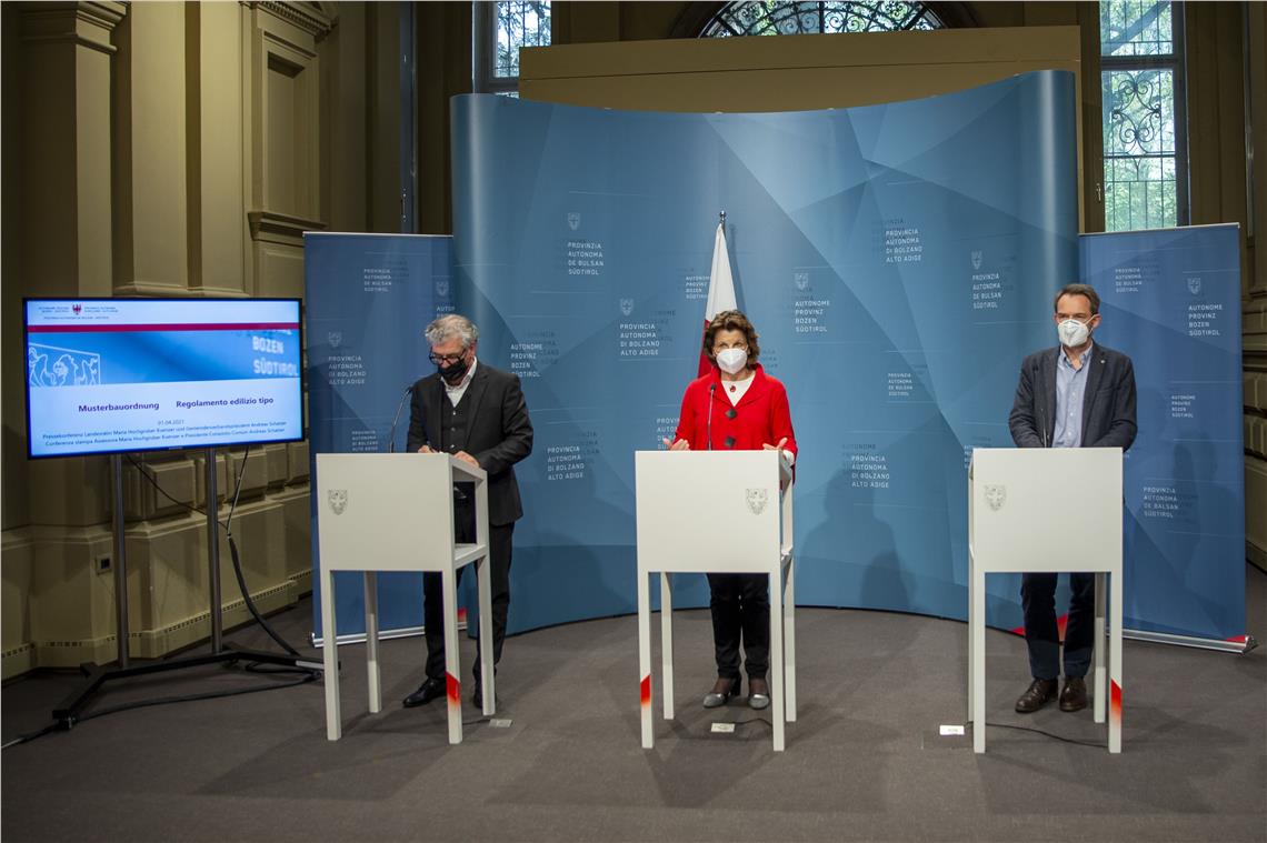 Bis 1. Juli 2021 haben die Gemeinden Zeit, um ihre Gemeindebauordnungen an die Musterbauordnung anzupassen und die darin vorgesehenen neuen Gemeindekommissionen zu ernennen. Welche Neuheiten damit verbunden sind, hat Landesrätin Maria Hochgruber Kuenzer gemeinsam mit Gemeindenverbandspräsident Andreas Schatzer und dem Direktor des Ressorts für Raumentwicklung, Landschaft und Denkmalschutz Frank Weber heute (1. April) im Rahmen einer virtuellen Pressekonferenz erklärt.