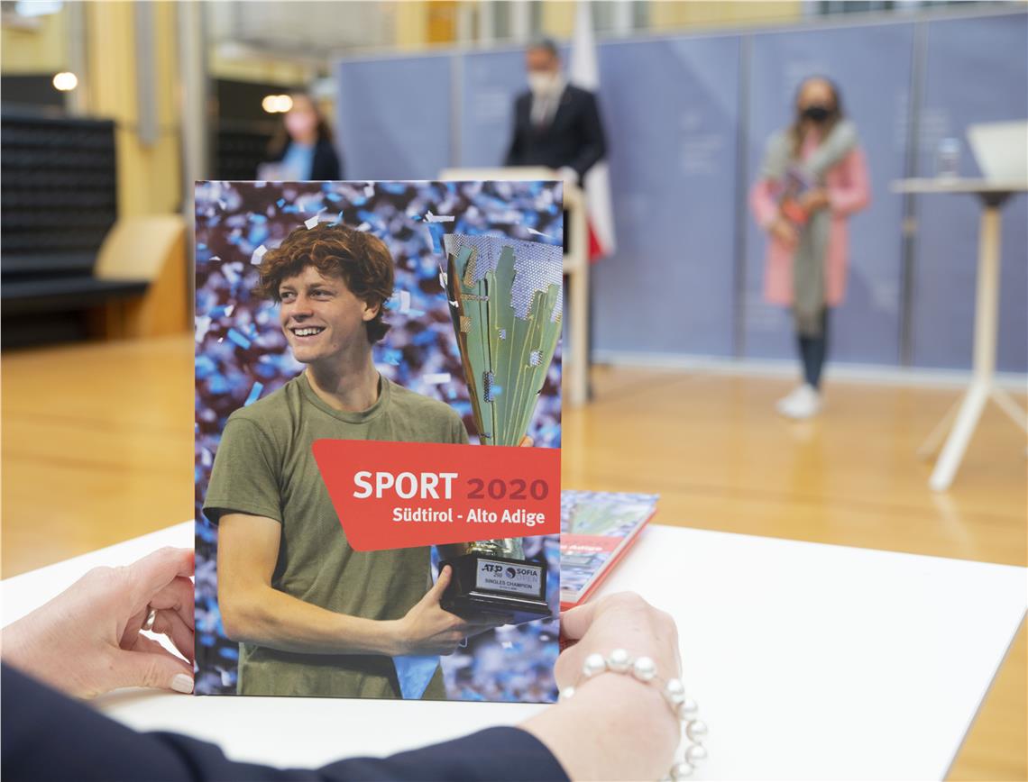 Dem großen Aufsteiger in der Sportwelt, dem Südtiroler Tennisspieler Jannik Sinner, ist das Titelbild des druckfrischen Südtiroler Sportjahrbuchs 2020 gewidmet, das heute (9. April) in einer Online-Pressekonferenz vorgestellt worden ist. Das Jahrbuch dokumentiert die Erfolge der Südtiroler Sportler und Sportlerinnen und berichtet über die sportlichen Großereignisse in Südtirol, aber auch über die pandemiebedingten Einschränkungen und deren Auswirkungen auf den Breitensport: Daher findet sich in dem mit 112 Seiten gegenüber dem Vorjahr um ein Drittel geschrumpften Jahrbuch ein Kapitel über die Auswirkungen des Covid-19-Notstandes auf den Südtiroler Sport.