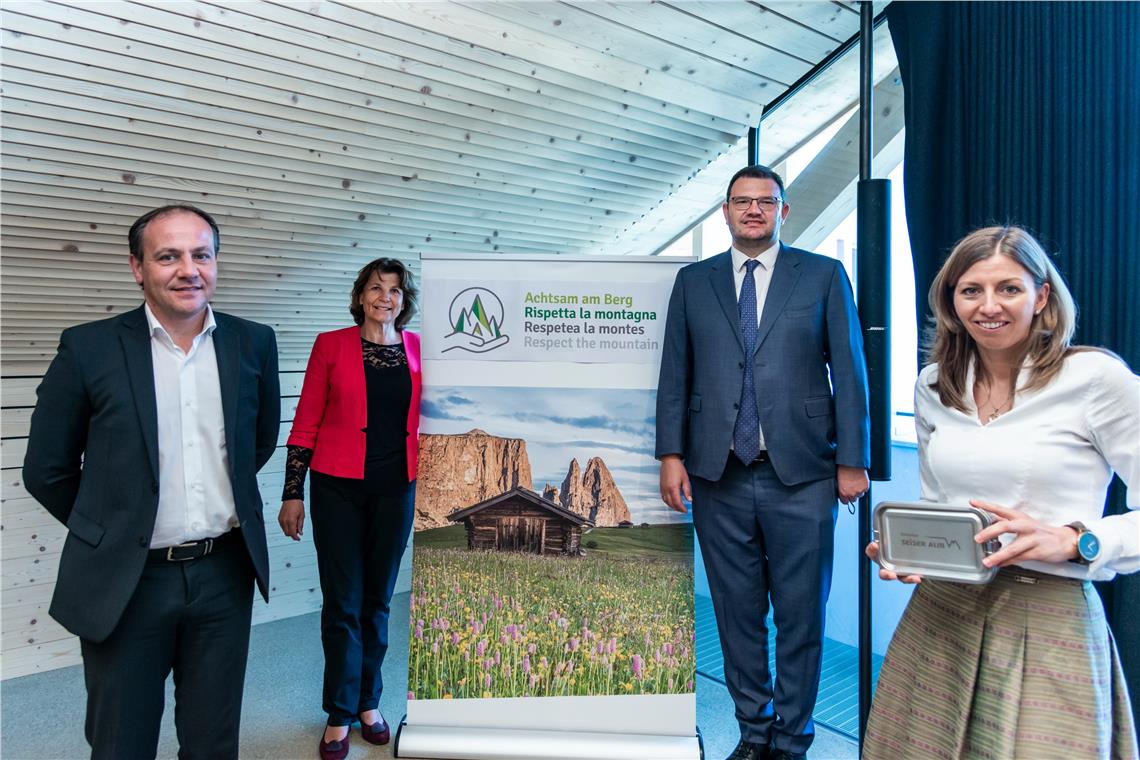Bewusstsein zu schaffen für ein verantwortungsvolles Handeln am Berg, aber auch im Alltag – und dies ausgehend von den Themen Trinkwasser und Abfallvermeidung: Das ist das Kernanliegen des Projekts "Achtsam am Berg", das heute (3. Juni) im Rahmen einer Pressekonferenz in Kastelruth vorgestellt wurde. Ziel ist es, Besucher und Touristiker im Dolomiten UNESCO Welterbegebiet für ein umweltfreundliches Verhalten zu sensibilisieren.
