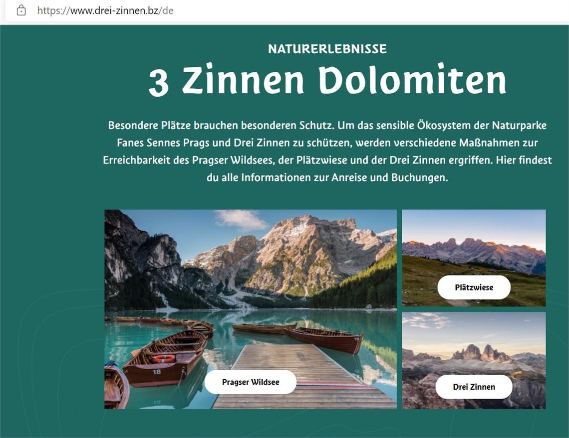 Bereits jetzt schon sind Buchungen für die Busse und Parkplätze im Pragser Tal und im Gebiet Drei Zinnen über www.drei-zinnen.bz/ticket möglich.