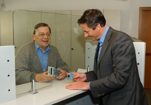 LPA - Das neue Inkasso-System der Landesämter für Kraftfahrzeuge und Führerscheine hat sich bewährt. Bezahlt werden kann sowohl in bar als auch mit Kreditkarte oder Bancomat, doch ist es seit vergangenem Montag nicht mehr notwendig, Posterlagscheine auszufüllen. Verkehrslandesrat Thomas Widmann hat sich nun persönlich von der Funktionstüchtigkeit des neuen Inkasso-Systems überzeugt.