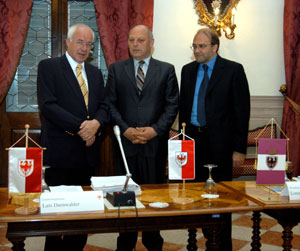 LPA – Die Landesregierungen von Südtirol, Tirol und dem Trentino sind heute zu einer gemeinsamen Sitzung im Bozner Merkantilgebäude zusammengetroffen. Zentrales Thema der Regierungskonferenz war der Verkehr mit dem Brennerbasistunnel und dessen Zulaufstrecken. Die drei Regierungschefs Luis Durnwalder, Herwig van Staa und Lorenzo Dellai berichteten nach der Sitzung über die bahenadelten Themen und die getroffenen Entscheidungen. Sie kündigten auch an, die Kontakte zwischen den Ländern vor allem auf Regierungsebene zu stärken.