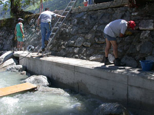 Vor allem im vergangenen Jahr hatte der Bach die von der Energiegesellschaft Montedison gebauten Ufermauern unterspült und die Schwellen beschädigt. Hinter der Mauer hatten sich deshalb schon mehrere Meter tiefe Löcher aufgetan. Bei Hochwasser bedeutete dies akute Überschwemmungsgefahr.