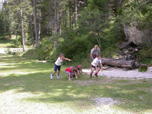 Freilich werden keine geistigen und sportlichen Spitzenleistungen verlangt: Es geht um Naturerlebnis und Umweltbildung, die Spaß machen sollen. Der „Naturathlon“ ist eine der vielen Initiativen des Naturparkamtes des Landes, die sich an Alt und Jung - vorzugsweise Familien - richten. Gestartet wird in Teams – so kann jeder seine Fähigkeiten voll einsetzen. An verschiedenen Stationen sind nämlich unterschiedliche Aufgaben zu bewältigen. Wer ahmt am besten einen hoppelnden Hasen nach? Wer ist der schnellste beim „Gämsenlauf“? Neben dem körperlichen Einsatz wird aber auch das Wissen rund um die Natur und Landschaft von Kampill auf die Probe gestellt. Bei jeder Station müssen die Teilnehmer unter drei - natürlich geheimen - möglichen Fragen eine auswählen. Da nicht alle drei Fragen gleich schwierig sind, ist auch eine gute Portion Glück gefragt…
