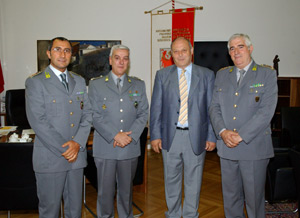 LPA – Seit Wochenbeginn hat die Südtiroler Finanzwache einen neuen Chef: Oberstleutnant Domenico Fornabaio löste Oberst Melchiorre Porretti ab. Gemeinsam mit dem obersten Finanzwachebeamten der Region, General Giulio Abbati, statteten sie Landeshauptmann Luis Durnwalder heute einen Antrittsbesuch ab.