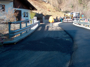 Dass die Sanierung der Landesstraße nach Afing notwendig war, hatte sich in mehreren Lokalaugenscheinen von Bautenlandesrat Florian Mussner und den Gemeindevertretern klar abgezeichnet. Die zwei neuen Brücken sind allerdings nur ein Teil des Bauvorhabens für das gefährliche Teilstück der Straße nach Afing in der Gemeinde Jenesien (LS 136). Die beiden neuen 14 und 19 Metern langen Brücken können inzwischen von Fahrzeuge mit einem Gewicht bis zu 60 Tonnen befahren werden. Gebaut hat sie das Bozner Unternehmen „Ho.Ti.En.“ für etwa 720.000 Euro. In Kürze wird auch die bestehende dritte Brücke abgerissen und neu aufgebaut. Die neue Brücke soll nicht nur etwas länger sondern auch tragfähiger werden Außerdem wird sie den engen Straßenabschnitt zirka einem Kilometer vor der Örtlichkeit „Pockschien“ ersetzen. Dieser Straßenabschnitt kann während der Bauarbeiten noch befahren werden. Gebaut wird an der 60 Meter langen Brücke ab Anfang des Jahres 2005. Die rund 1,4 Millionen Euro teure Brücke soll im Jahr 2007 fertig sein. „Die Sanierung der Straße ist für unsere Gemeinde sehr wichtig besonders auch für die Wirtschaft auch mit dem Bau, der in mehreren Phasen abläuft sind wir zufrieden“, so der Bürgermeister von Jenesien, Oswald Egger.