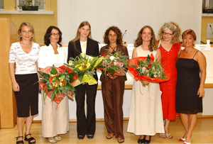LPA - Zum sechsten Mal werden am kommenden 13. Oktober 2004 Förderpreise für wissenschaftliche Arbeiten zum Thema Chancengleichheit zwischen Mann und Frau vergeben. Der Landesbeirat für Chancengleichheit und das Frauenbüro im Landesamt für Kabinettsangelegenheiten laden um 10.30 Uhr zur Preisverleihung in den Innenhof des Palais Widmann. Dort werden die drei Preisträgerinnen ausgezeichnet.