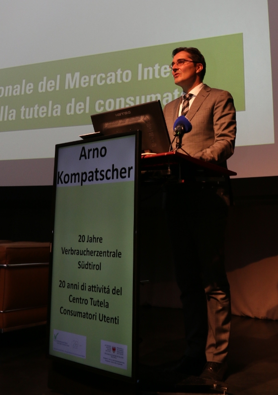 Il Centro tutela consumatori utenti (CTCU) è stato fondato il 4 luglio 1994 a Bolzano, e da allora è cresciuto in maniera costante sino a diventare non solo un punto di riferimento per tutta la cittadinanza, ma anche un'affidabile partner sociale. Al convegno per i 20 anni del centro, svoltosi oggi (24 novembre) all'Eurac, hanno partecipato in rappresentanza della Giunta provinciale l'assessore Waltraud Deeg e il presidente Arno Kompatscher, il quale ha aperto i lavori con un intervento di saluto.