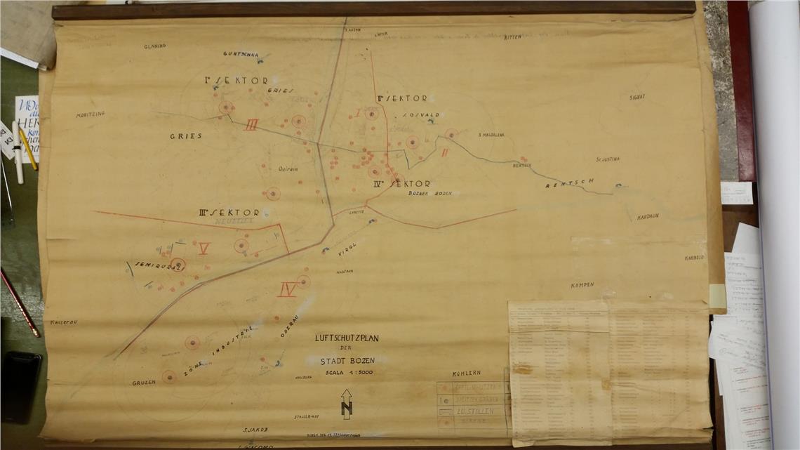 Tra il 2 settembre 1943 e il 28 febbraio 1945 la città di Bolzano è stata oggetto di 13 bombardamenti durante la Seconda Guerra mondiale. Gli ordigni che l’hanno colpita durante i bombardamenti compresi fra il 2 settembre 1943 e il 4 ottobre 1944 sono stati registrati puntualmente, mentre gli altri tre successivi, tra il 4 gennaio e il 28 febbraio 1945, non sono documentati. Le incursioni hanno interessato prevalentemente la zona della stazione ferroviaria. Questi dati sono riportati sulla mappatura degli ordigni bellici che il Curatorio per i Beni Tecnici Culturali ha scovato presso l’Abbazia di Muri Gries nel corso delle ricerche archivistiche condotte in merito all'areale della stazione ferroviaria di Bolzano. Il materiale cartografico originale, nove mappe in totale, indica la localizzazione puntuale con simboli precisi degli ordigni bellici - di bombe, ordigni inesplosi e bombe incendiarie - riportata in modo puntuale sulla mappa catastale di Bolzano. La preziosa documentazione, dopo la sua digitalizzazione, questa mattina (30 settembre) è stata trasferita alla pubblica amministrazione, Provincia e Comune di Bolzano, nell'ambito di un evento ufficiale. La consegna è avvenuta durante una conferenza stampa a cura di Wittfrida Mitterer, direttrice del Curatorio per i Beni Tecnici Culturali, alla presenza del rappresentante dei due enti e dell'autorità militare nella persona del colonnello Gaetano Celestrino.