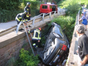 Foto BFBZ - VVFBZNel tardo pomeriggio del 19.07.2005, i Vigili del Fuoco del Corpo Permanente di Bolzano sono stati allarmati per un incidente con autovettura coinvolta nei pressi della stazione a valle della funivia di San Genesio. L'autista di un'Audi Avant, per cause ancora da precisare, perdeva il controllo e l'auto dopo aver divelto il guard-rail finiva in un fosso. Fortunatamente l'autista e un'altra occupante del mezzo rimanevano illesi. Alcuni testimoni oculari riferivano ai Vigili del Fuoco giunti sul posto che dalla parte posteriore dell'autovettura era fuoriuscito del liquido bianco non meglio identificato. Da un immediato controllo veniva appurato che si trattava solamente di latte fuoriuscito dai cartoni rottisi a causa dell'incidente. Il recupero dell'autovettura risultava complicato. Solo con l'ausilio di un'autogru, giunta sul posto successivamente, si riusciva a riportare l'auto sulla carreggiata. Mediante l'utilizzo di materiale assorbente si recuperava il carburante Diesel fuoriuscito, in modo da evitare pericolo di inquinamento per il ruscello. Sul luogo dell'incidente erano presenti anche la Polizia Municipale e la Croce Bianca.