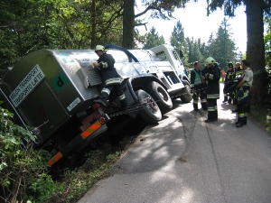 bfbzIl 21.09.2005 intorno alle ore 10:30 su una strada secondaria di S.Genesio, un camion che trasportava latte, è uscito di strada. Un albero ha evitato il ribaltamento dello stesso.Il camion si è fermato in una posizione critica.