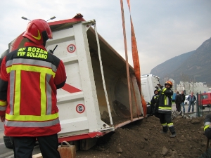 I Vigili del Fuoco hanno quindi provveduto al recupero del carico ed al raddrizzamento del pesante mezzo.
