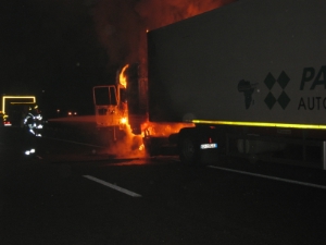 La scorsa notte verso le ore 22 il Corpo Permanente dei Vigili del Fuoco di Bolzano é stato allertato per un intervento spettacolare. Sulla Corsia Nord dell´A22 un autotreno frigo che trasportava datteri ha dovuto sostare appena fuori dal tunnel del Virgolo a causa di un incendio, che sprigionatosi in prossimità della ruota anteriore destra, si é immediatamente propagato al resto dell´automezzo.