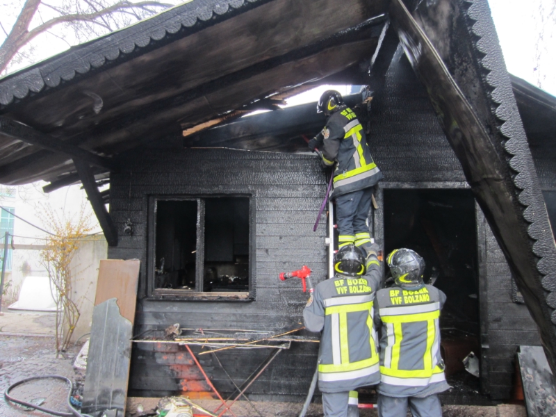 I lavori di spegnimento da parte della squadre del Corpo Permanente dei Vigili del Fuoco di Bolzano si sono conclusi in breve tempo.