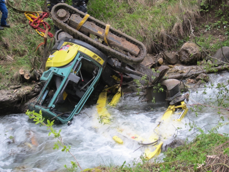 Alle 17:07 la Squadra gru del Corpo Permanente dei Vigili del Fuoco di Bolzano è stata chiamata a Selva di val Gardena per un incidente sul lavoro. Un escavatore di 5 tonnelate di una ditta di Fiè durante lavori di consolidamento di un muro di sostegno privato, a causa del cedimento dello stesso, è finito nel Rio Gardena 20m più a valle. L'operatore dell'escavatore è riuscito ad abbandonare il mezzo ed è rimasto illeso.