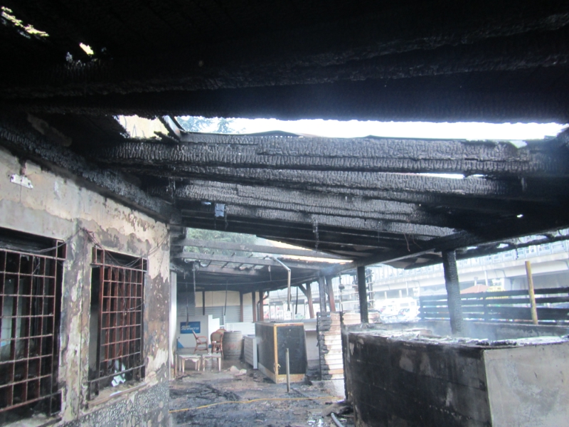 Brucia la veranda della ex discoteca Soul Kitchen, bar vicino danneggiato dal fumo.
