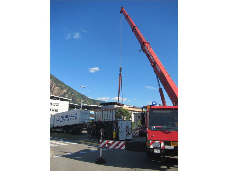 Oggi, 19.06.2018 verso le 16:50 questo Corpo Permanente dei Vigili del Fuoco é stato allertato per un incidente in via T. Edison a Bolzano. Il rimorchio di un camion, carico di sostanze pericolose, si è ribaltato. L'incidente non ha causato feriti.