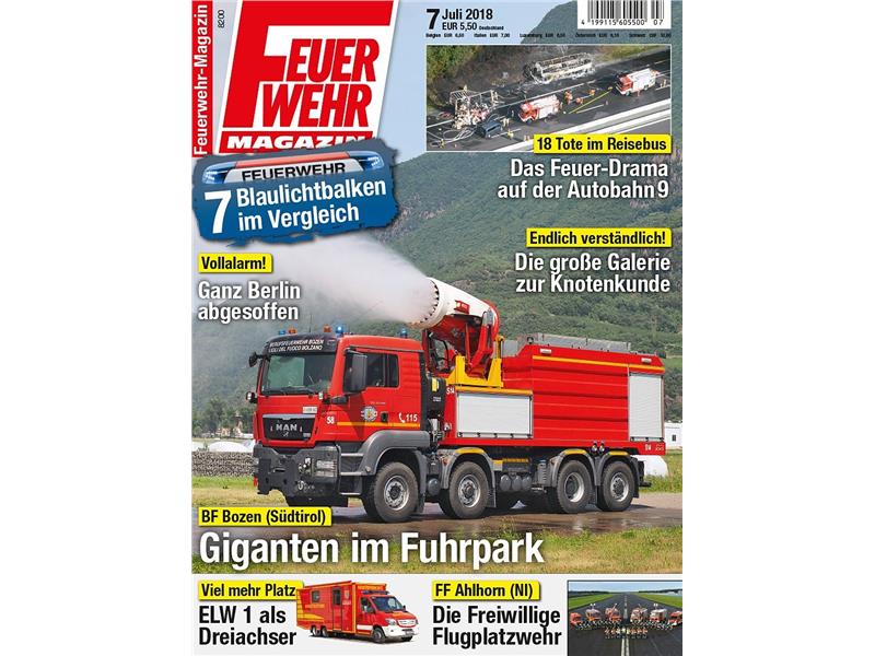 "Nel numero 7/2018 riportiamo in dettaglio un reportage di 12 pagine sul Corpo Permanente Vigili del Fuoco di Bolzano.", così riferisce la rivista Feuerwehrmagazin.