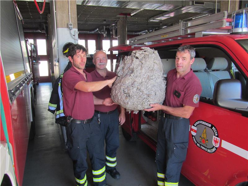 Nel primo pomeriggio di oggi mercoledi 26.09.2018 il Corpo Permanente dei Vigili del Fuoco di Bolzano é intervenuto in via Vittorio Veneto, presso la caserma dei militari, per recuperare un nido di vespe di generose dimensioni. Vista la particolaritá, la squadra ha portato questo interessante esemplare in caserma, cosicchè sia possibile esporlo presso la nostra aula istruzione ed utilizzarlo per motivi didattici.
