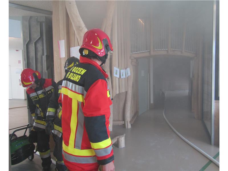All'arrivo sul posto della squadra d'intervento lo stabile risultava già completamente sgombro da visitatori. Il personale di vigilanza ha eseguito prime manovre di spegnimento sul posto. Un addetto di viglianza è entrato a questo scopo in un'ambiente interessato dal fumo. A causa di questa esposizione è stato soccorso dai sanitari e portato al vicino nosocomio per le cure mediche del caso.
