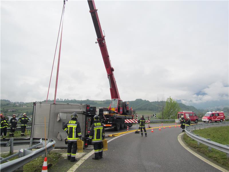 Nella mattinata di oggi 09.05.2019 alle ore 08:43 il Corpo Permanente dei Vigili del Fuoco di Bolzano veniva allertato per un incidente stradale presso lo svincolo MEBO di Appiano al km 222+720m, dove un furgone Nissan da 3,5 tonnellate di massa complessiva, dotato di sponda caricatrice, che trasportava piante, si era ribaltato in curva.