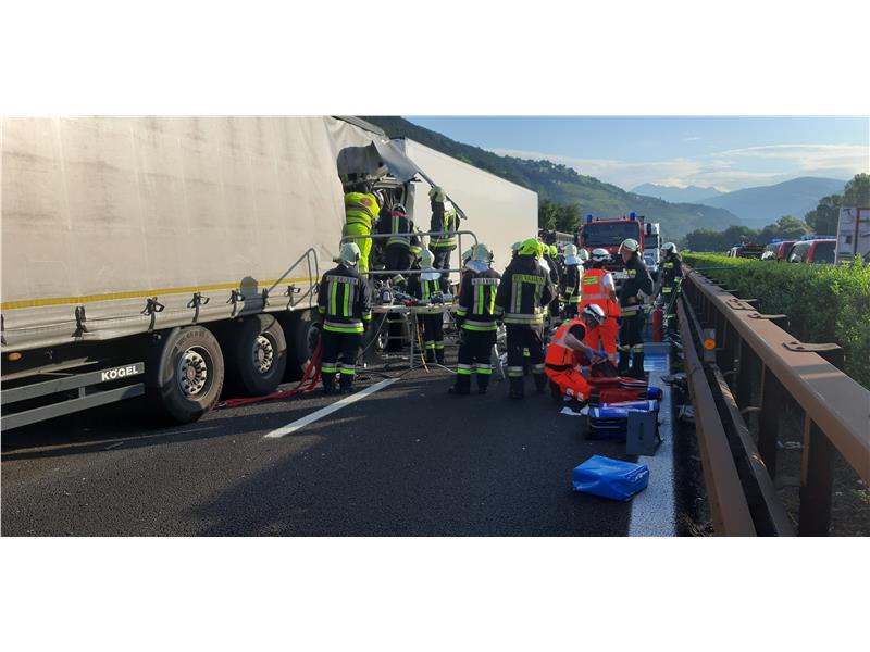 Due autisti sono stati incastrati tra le lamiere di rispettivamente tre autoarticolati ed un furgone. Gli incidentati sono stati liberati con l´ausilio delle cesoie idrauliche e consegnati alle cure del medico d'urgenza. Durante le operazioni di soccorso entrambe le corsie dell´A22 sono rimaste chiuse al traffico. In intervento si trovavano anche i VVF volontari di Bressanone, Varna e Chiusa, il medico d´urgenza, tre ambulanze della Croce Bianca, la Polizia Stradale, gli ausiliari del traffico A22 oltre il Corpo Permanente dei Vigili del Fuoco con l´autogrú e rispettivamente 11 vigili con 5 mezzi.
