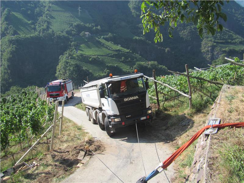 Su di un erto accesso ad un maso, non adatto ai mezzi pesanti, un camion trasportante asfalto, si era ritrovato in una situazione pericolosa e rischiava di ribaltarsi. Dopo un complesso intervento di recupero, durato tre ore, il mezzo pesante veniva rimesso in carreggiata.