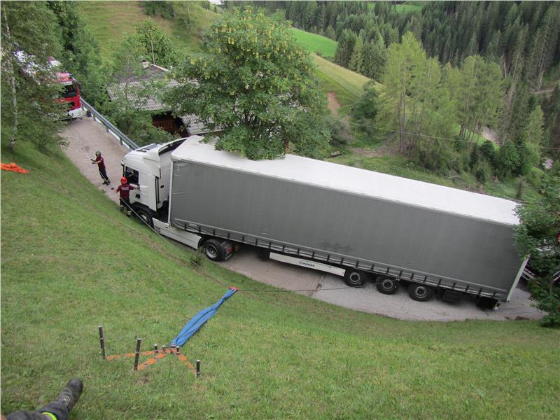Nella frazione di Obereggen nel comune di Nova Ponente, un semirimorchio carico di pannelli isolanti in fibra di legno ha preso l'uscita sbagliata alla rotonda ed dopo circa un chilometro è finito in una strada cieca. Poiché non era più possibile per il conducente girare il veicolo e non c'era più via d'uscita per liberare la strada comunale, sono stati avvisati Vigili del Fuoco.