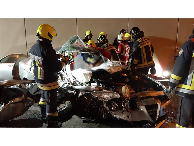 Autovettura si schianta in galleria dopo collisione con Guard Rail.