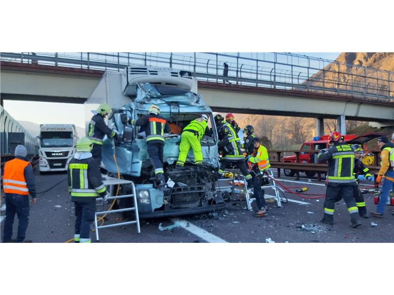 Intorno alle ore 8:50 si é verificato un incidente stradale in A22 corsia Nord km 90 che ha visto coinvolti 2 camion e un'autovettura. Le squadre intervenute hanno operato per estrarre il conducente di uno dei due mezzi pesanti coinvolti. Il conducente del secondo mezzo pesante è uscito autonomamente dal mezzo ed era illeso, mentre i passeggeri dell'autovettura sono stati soccorsi dal servizio sanitario.