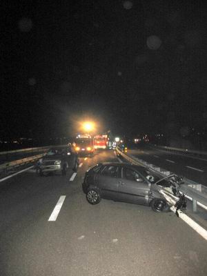 VVF BolzanoVerso le ore 19.45 della vigilia di Natale si é verificato un incidente stradale sulla corsia nord della MEBO all'altezza del km 4 nel quale sono state coinvolte tre autovetture. I quattro feriti, dei quali nessuno grave, sono stati trasportati con le ambulanze delle Croci Bianca e Rossa di Bolzano all'ospedale Regionale di Bolzano. I vigili del fuoco del Corpo Permanente di Bolzano hanno messo in sicurezza la zona dell'incidente liberandola dalle lamiere delle autovetture e provvedendo ad assorbire la benzina e l'olio fuoriusciti dai mezzi incidentati (a causa dell'impatto contro il guard-rail centrale, il motore di una vettura é stato sbalzato sulla corsia opposta). Il servizio strade della Provincia ha provveduto a posizionare la segnaletica sul luogo dell'incidente e ad asportare il guard-rail danneggiato. I rilievi relativi alla causa dell'incidente sono stati eseguiti da una pattuglia dei Carabinieri di Bolzano. Poiché la corsia nord é rimasta chiusa per piú di un'ora a causa dell'incidente, si é formata una lunga colonna.